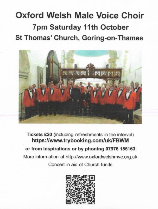 Tickets are available from the organisers on the following link – Benefice of Goring and Streatley with South Stoke : Oxford Welsh Male Voice Choir – 11 October 2025
