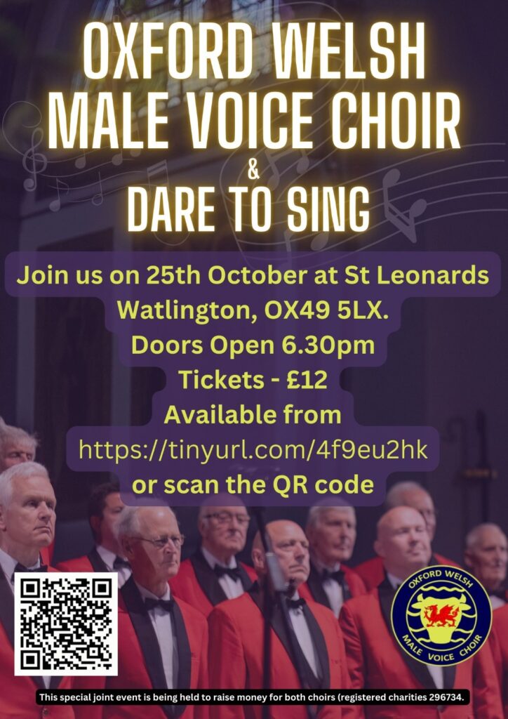 This October sees OWMVC returning to Watlington, singing in partnership with ‘Dare to Sing,’ an established and exciting Welsh Ladies’ Choir. We don’t often sing with the ladies… so we’ll be preparing for a beautiful mixture of contrast and harmony in the sound of the two choirs.